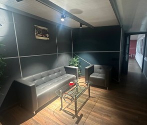удобную зону ожидания с кофейным аппаратом